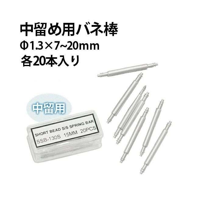 バネ棒 中留め用 φ1.3×7〜22mm サイズ1種類 20本入り DE-SSB130 時計部品 時計修理 バックル バンド